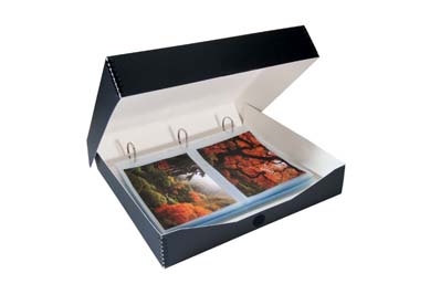 The elegant appearance and functional quality defy the economical price. Rust proof, polished black, metal corners provide stacking strength and create a wonderful accent for the heavy-weight, acid-free, matte black exterior. The unit opens to expose a soft-white, acid-free interior buffered with 3% calcium carbonate. A 1.5'' D-ring mechanism holds contents firmly in place while the cutaway edge provides easy access for page turning. Accommodates most standard 3-ring page formats