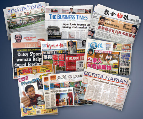 Singapore Press Holding (SPH) is the largest newspaper publisher in Singapore. Micrographics Data is the exclusive micropublisher of all the newspaper titles under the umbrella of SPH that includes but not limited to Straits Times, The Business Times, Lian He Zao Bao, Lian He Wan Bao, Berita Harian, Tamil Murasu etc.